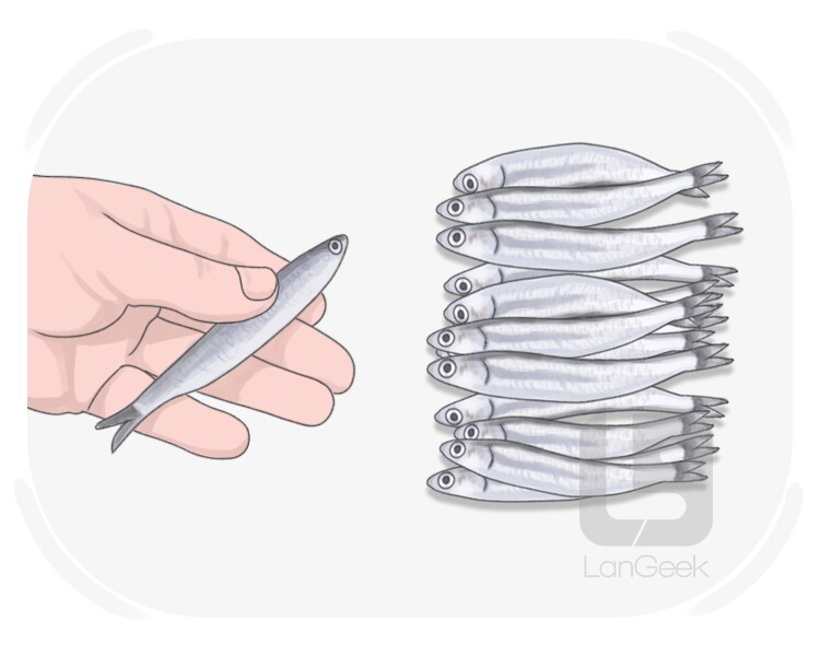 a small forage fish that is edible and lives in marine waters, forming large shoals