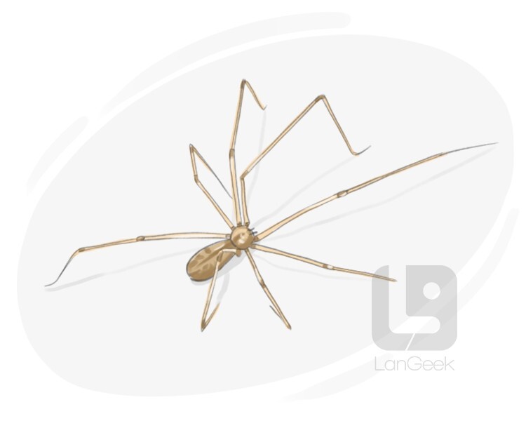 an invertebrate of arachnid order with long slender legs that lives in moist shady environments