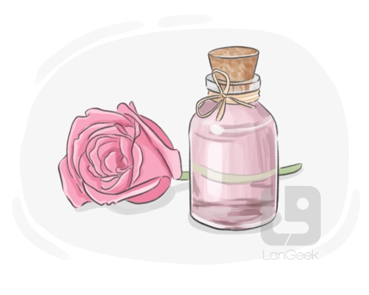a fragrant floral water derived from rose petals, often used in skincare and beauty products for its soothing and refreshing properties