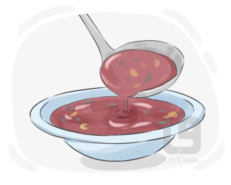 to pour a thin, fine stream of liquid, such as sauce, oil, or syrup, over food