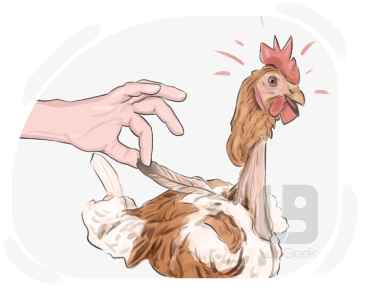 to pull out the feathers of a dead bird in order to prepare it for cooking