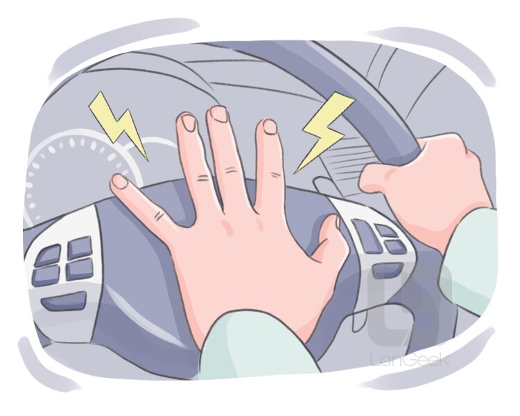 to cause a horn, particularly of a vehicle, to make a loud noise