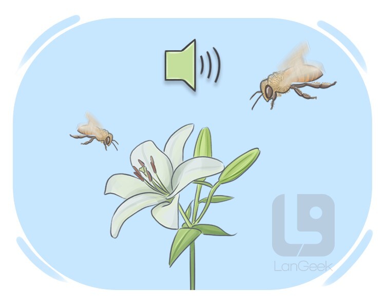 to make a low and continuous humming or vibrating sound, like the sound of a bee or a motor