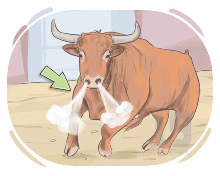(of an animal) to make a sudden rough sound by exhaling hard through the nose as a sign of excitement or agitation