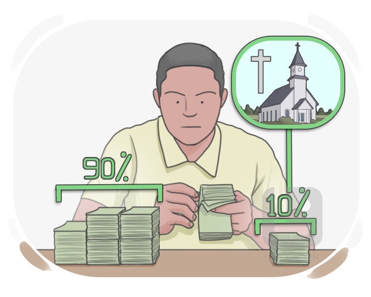 to donate ten percent of one's income, often to the church, as a religious commitment or financial support