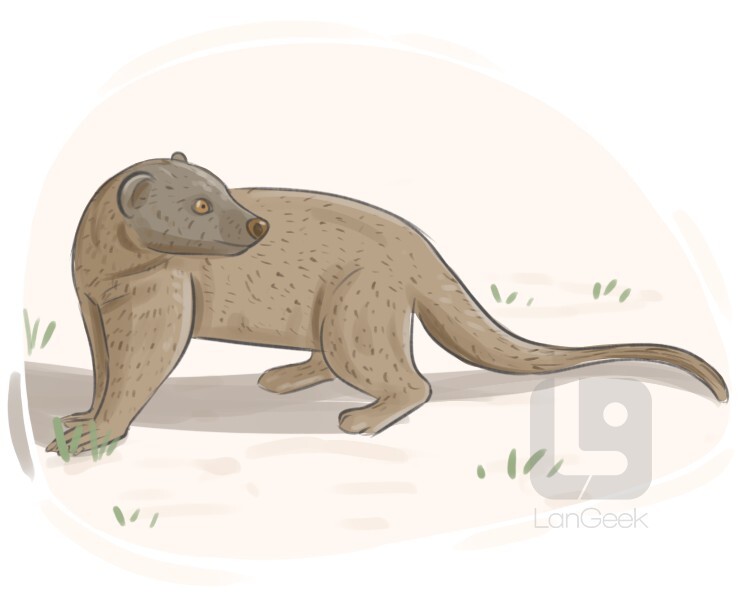 a small furry mammal with sharp claws, long tail and short legs that feed on snakes and small animals, found in Asia and Africa
