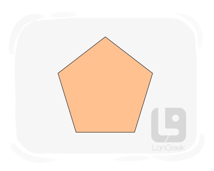 having the shape of a pentagon, which is characterized by five straight sides and five angles