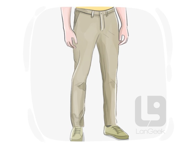 casual pants made from a lightweight cotton twill fabric, typically tan or beige in color, known for their resistance to wrinkling