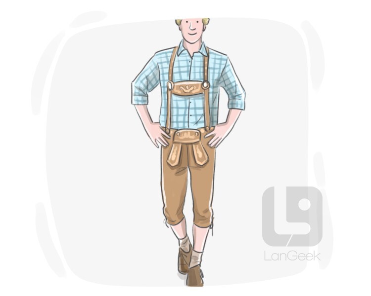 a type of traditional leather pants worn in Bavaria and other parts of Germany, Austria, and Switzerland, often decorated with intricate embroidery