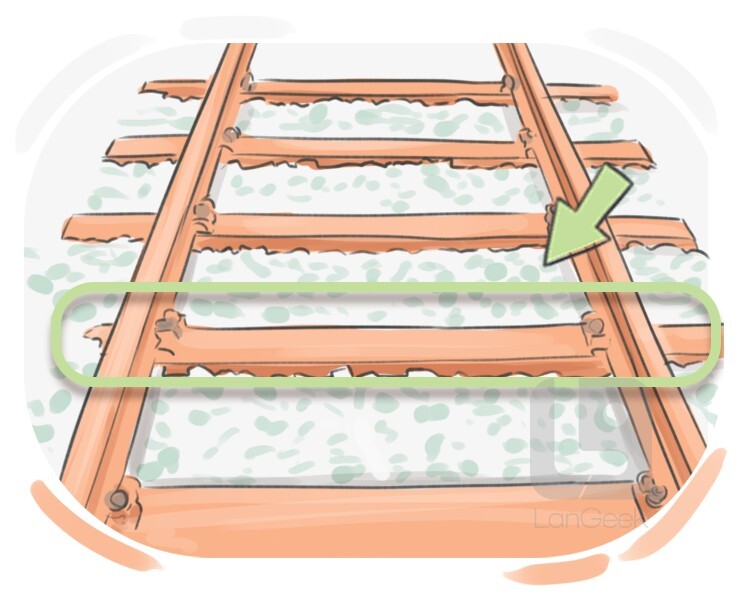 a crosspiece used to hold the rails in place and keep them evenly spaced