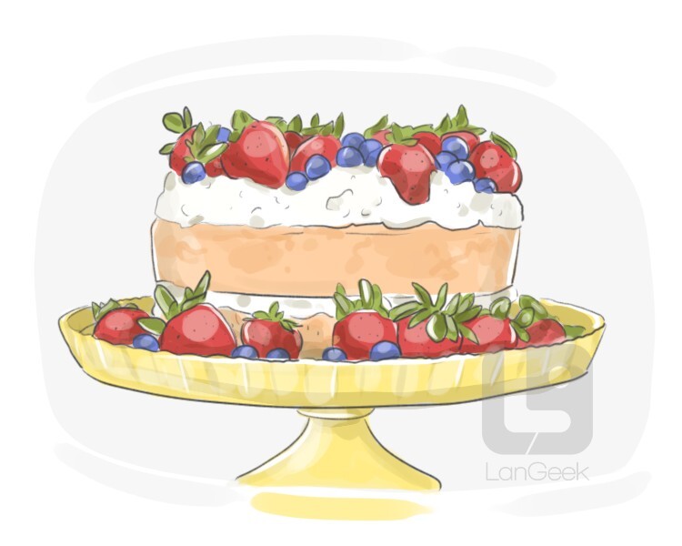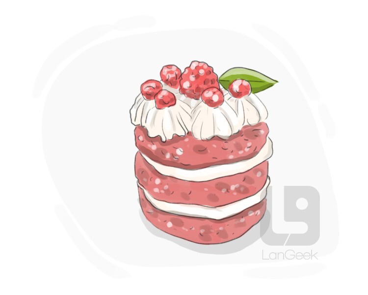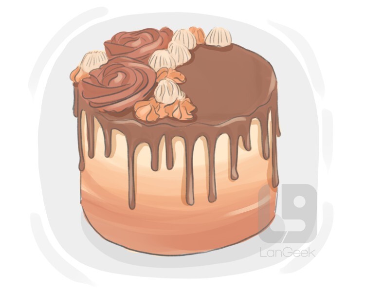 a type of cake made with layers of cake, usually filled with jam, cream, or other flavorings, and topped with a glaze or icing