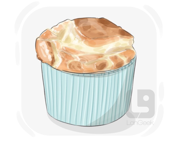 a dish made with mixing beaten egg whites, flour, and milk together with cheese or fruit until light and spongy