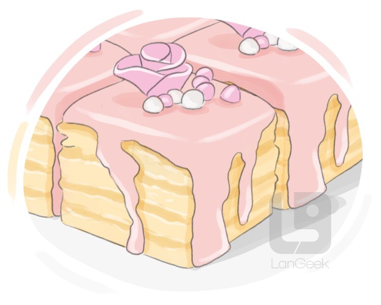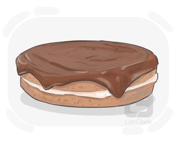 a type of cake that is made from two layers of sponge cake filled with pastry cream and topped with a chocolate glaze