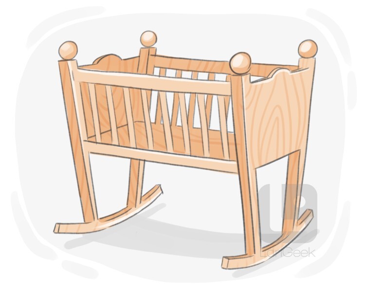 a small bed or bassinet designed for infants and young babies, typically made of wood or wicker, and equipped with rockers or gliders to help soothe and lull the baby to sleep