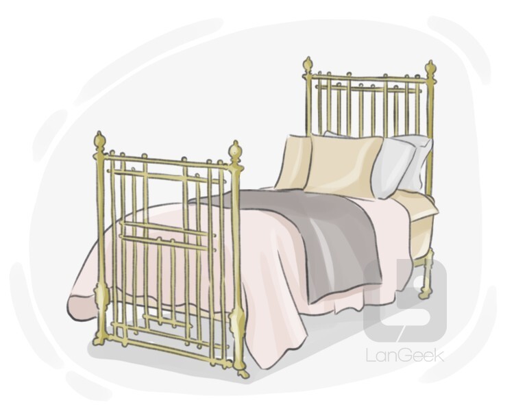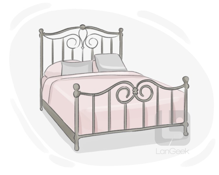 a decorative type of bed that was popular during the Victorian era, often featuring ornate designs with curved metalwork and intricate carvings on the headboard and footboard