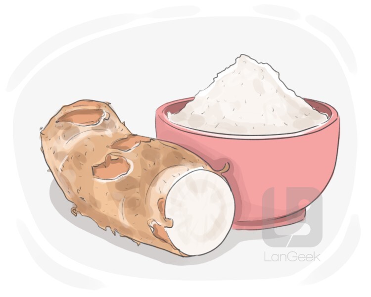 a starchy powder derived from the rhizomes of tropical plants, used as a thickening agent in cooking and baking