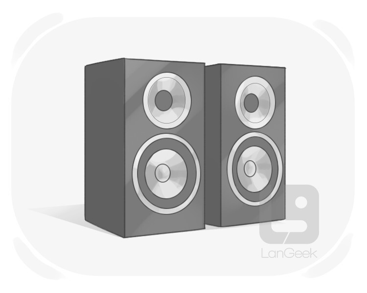 equipment that transforms electrical signals into sound, loud enough for public announcements, playing music, etc.