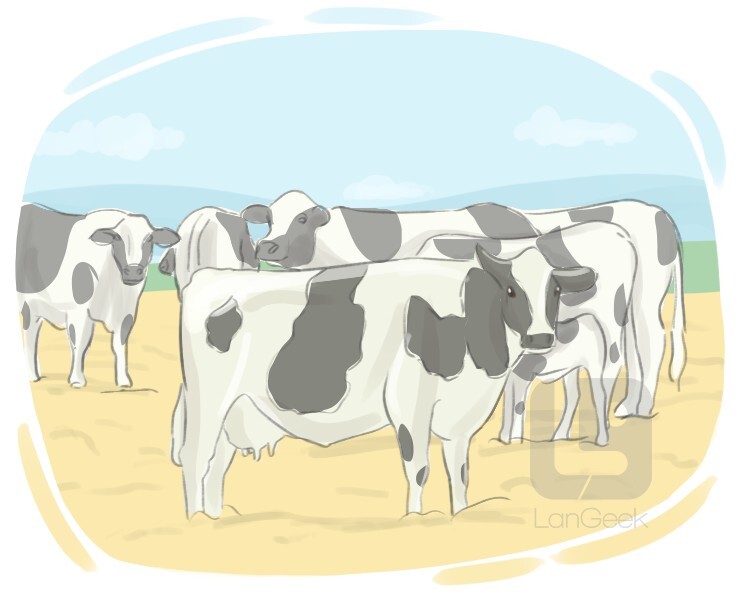 large farm animals, such as cows and bulls, raised for meat, milk, or labor