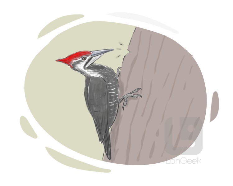 a bird with a drill-like beak that makes holes in trees in search of insects to feed on