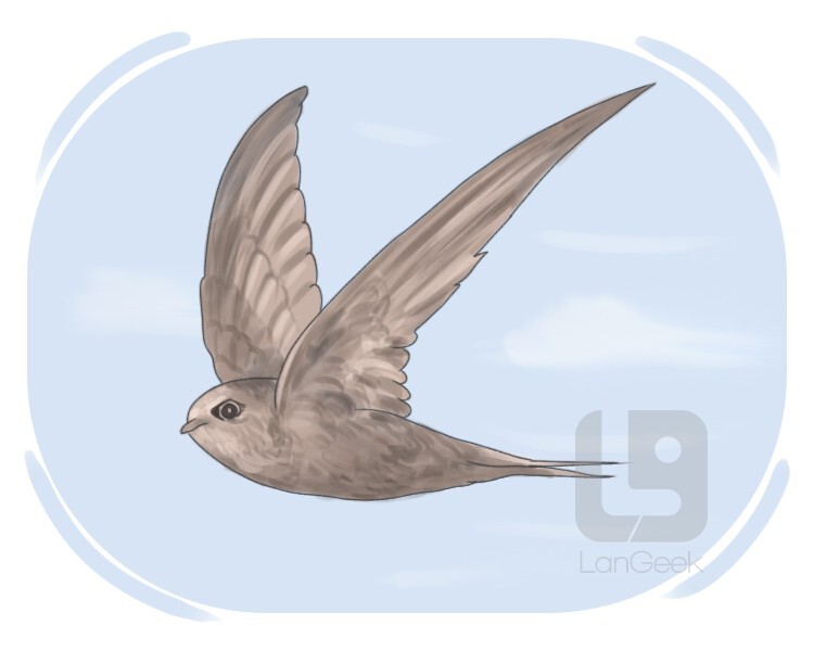 a small fast-flying bird with pointed wings and tail and a short bill, which feeds on insects