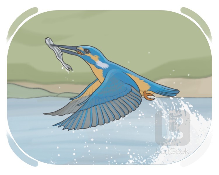 a small bird with a large crested head, orange and blue plumage and a long beak that uses to catch fish