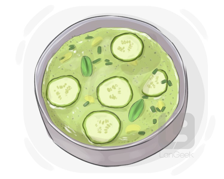 a cold or hot soup made primarily with cucumbers, often mixed with other ingredients such as yogurt, herbs, and spices