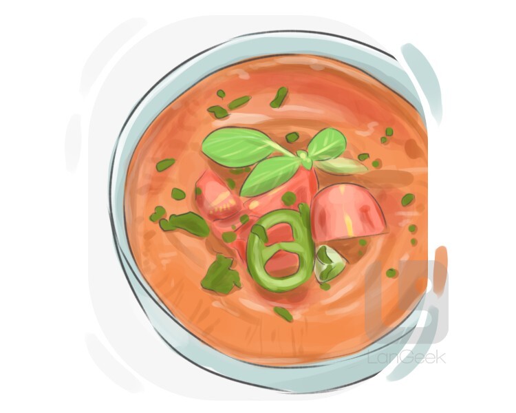 a cold Spanish soup made with blended vegetables such as tomatoes, cucumbers, peppers, and onions