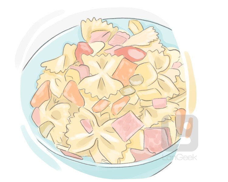 a cold dish made of cooked pasta, vegetables, and a dressing, usually a vinaigrette