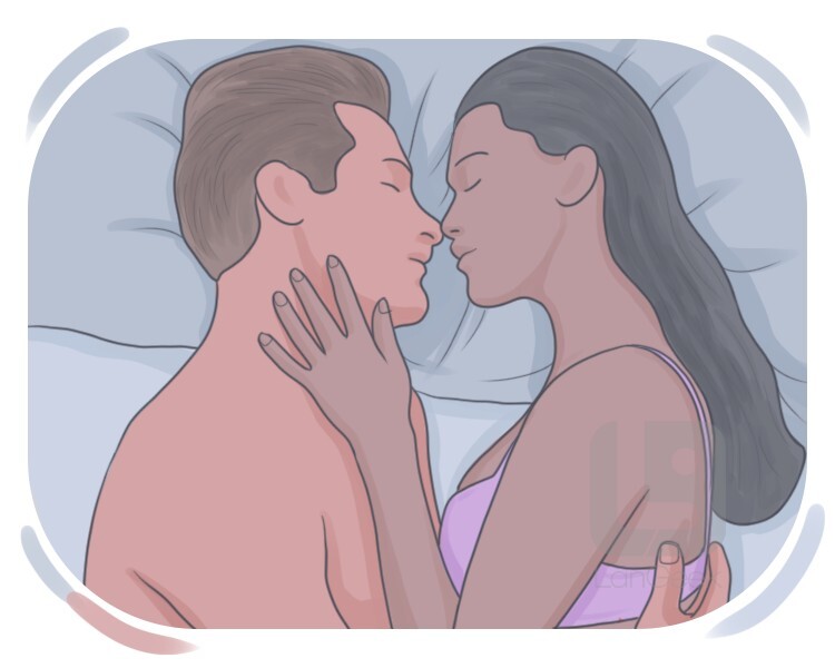 to touch someone else's lips or other body parts with one's lips to show love, sexual desire, respect, etc.
