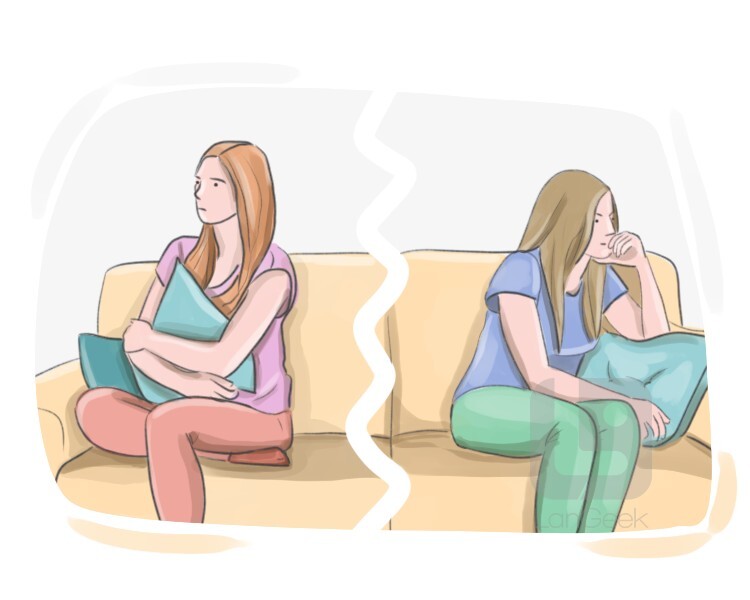 having an unfriendly relationship with someone, often due to a disagreement