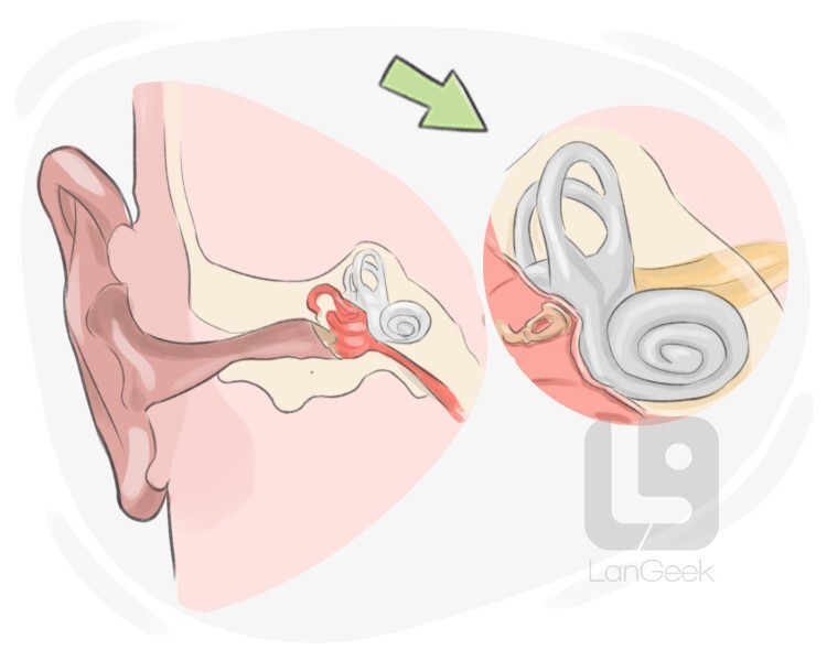 (anatomy) a spiral cavity in the inner ear that contains sensory organs which send nerve signals to the brain in response to vibrations