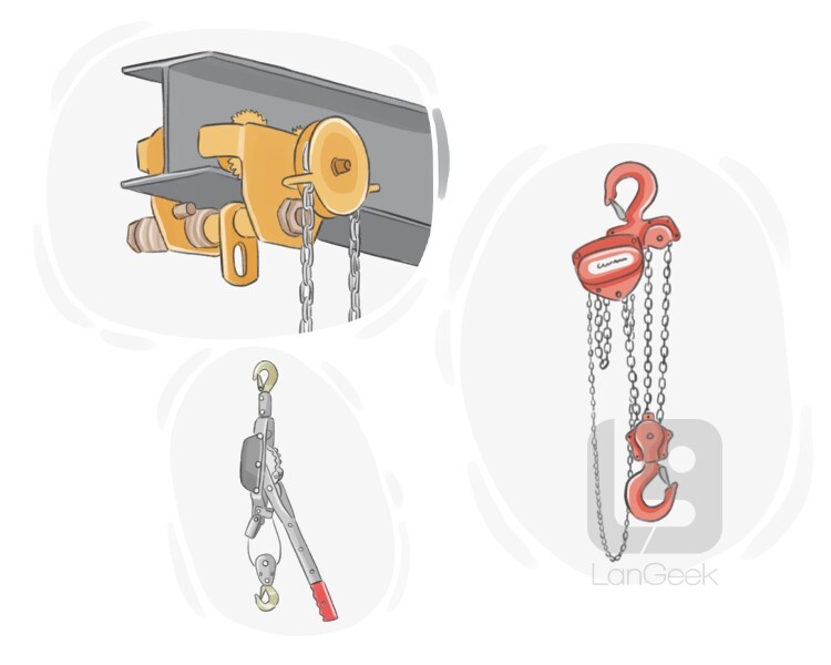 a lifting device that uses a chain and pulley system to lift and lower heavy loads