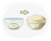 Elle fait lever son pain en mélangeant soigneusement de la levure et en la laissant fermenter, ce qui donne une texture légère et moelleuse.
