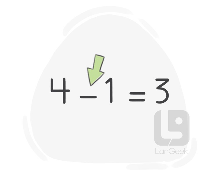 used to indicate that a number, quantity, or amount is being subtracted from a total
