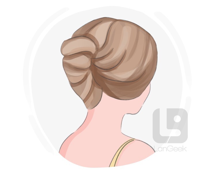 a woman's hairstyle in which the hair is pulled back, twisted and pinned at the nape of the neck