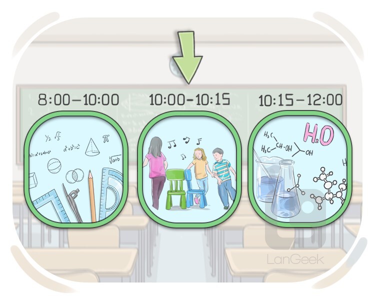 a period of time during the school day when students are not in class, often used for relaxation, refreshment, or other activities