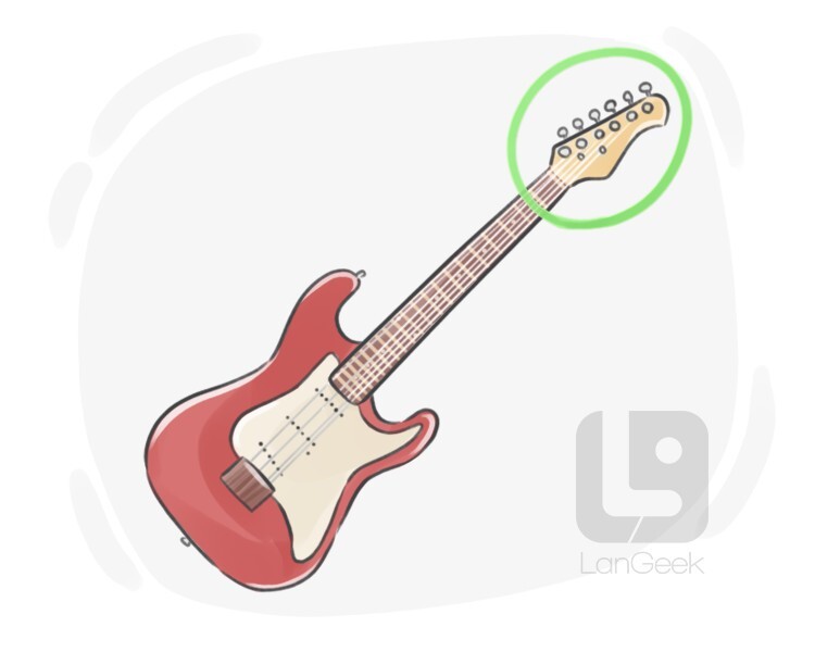the portion at the end of the neck of a stringed musical instrument that holds the tuning pegs or machine heads