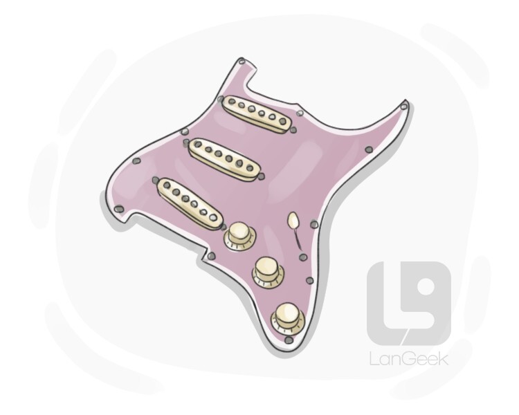 a protective plate attached to a stringed instrument to prevent scratches or damage from picking or strumming