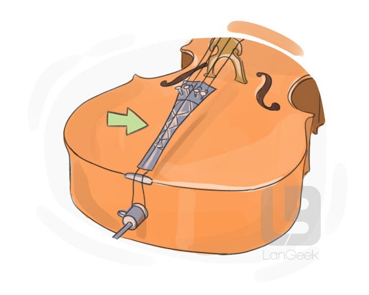 a structural component inside the body of a string instrument, such as a violin or cello, that helps support the pressure exerted by the strings on the top (soundboard) of the instrument