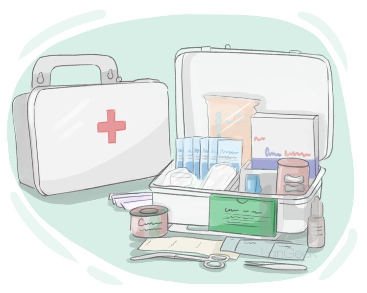 a set of tools and medical supplies, usually carried in a bag or case, used in case of emergency or injury