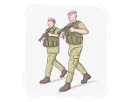 the act of troops walking with regular, disciplined steps, often over a distance or as part of maneuvers