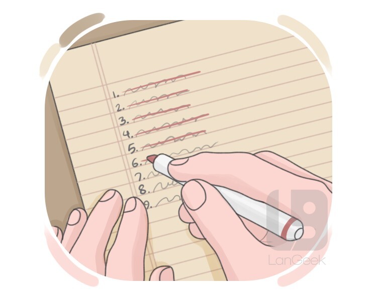 to mark an item or task on a list as completed or canceled by drawing a line through it