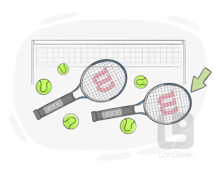 a sports equipment used in games like tennis, badminton, and squash, consisting of a frame with strings or catgut for hitting a ball or shuttlecock