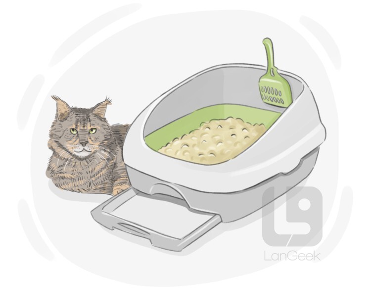 a container filled with special litter for cats or other small animals to use as a toilet