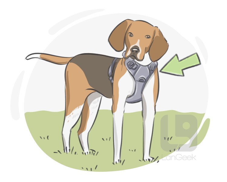 a piece of equipment that fits around an animal's body, typically a dog or cat, and is used to secure and control the animal