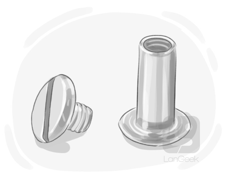a fastener with a threaded post and a screw head, commonly used for binding or securing materials