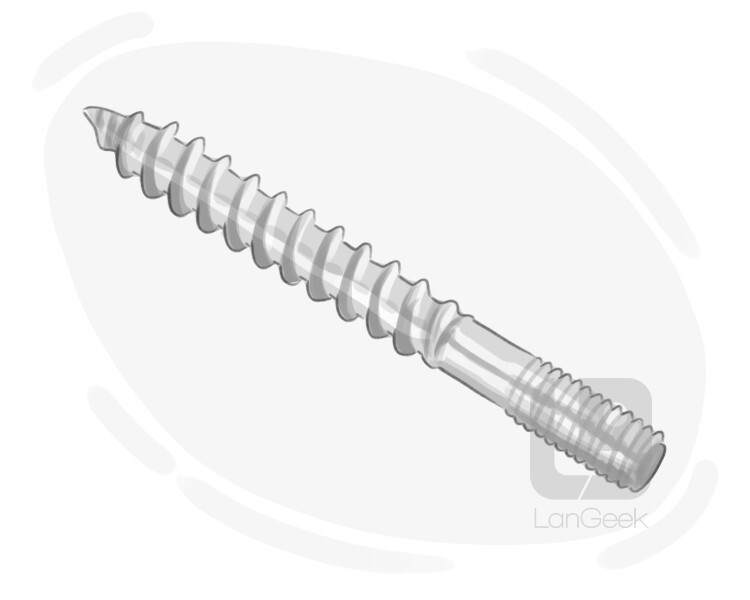 a threaded fastener with a pointed tip and helical threads along its shank, specifically designed for securely joining pieces of wood together by creating a threaded hole in the wood as it is driven in, offering strong and reliable fastening in woodworking projects