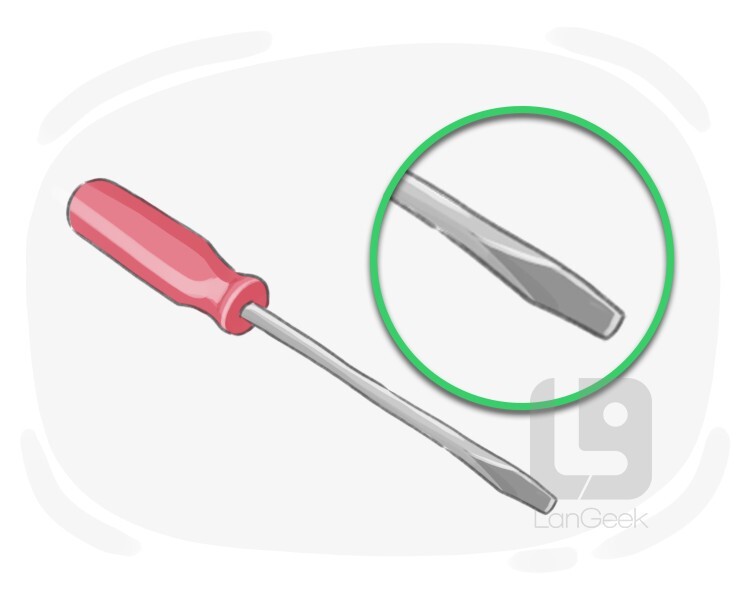 a tool with a flat, straight blade used for turning screws with a corresponding slot or "flathead" screw head
