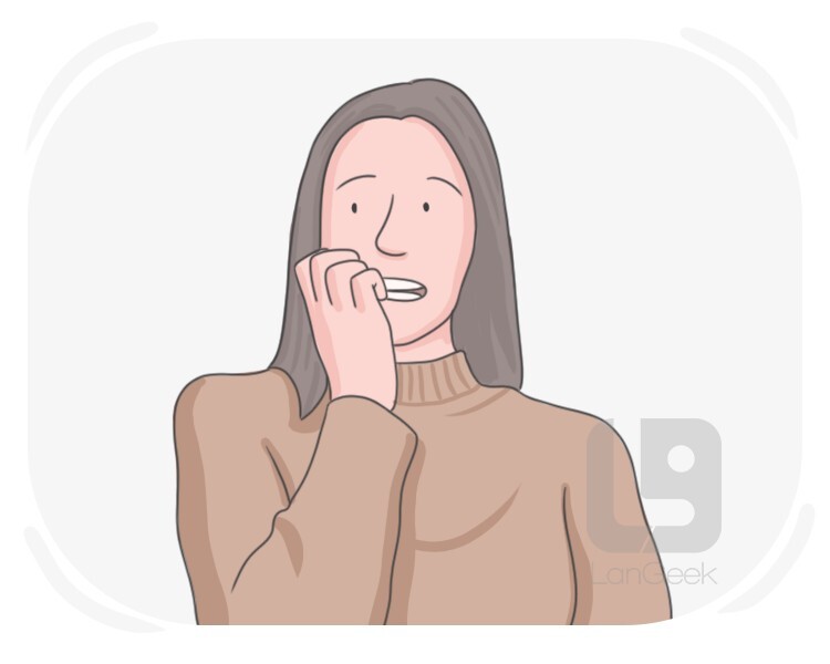to gently bite, usually as a sign of affection or when feeling nervous