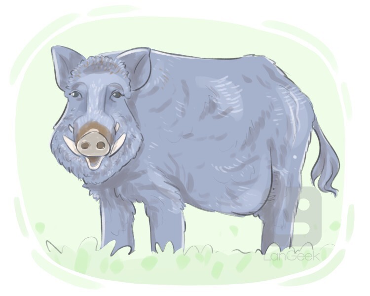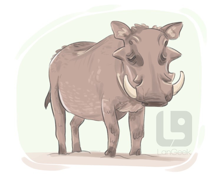 a wild pig with a pair of tusks that lives in sub-Saharan Africa and feeds on vegetables